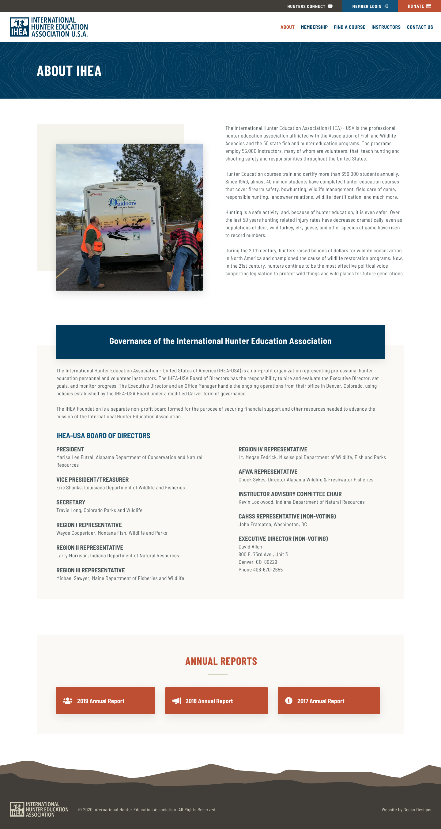 The website was designed in Figma to highlight easy-to-read content and media like outdoor photography, videos, and other assets for IHEA members.